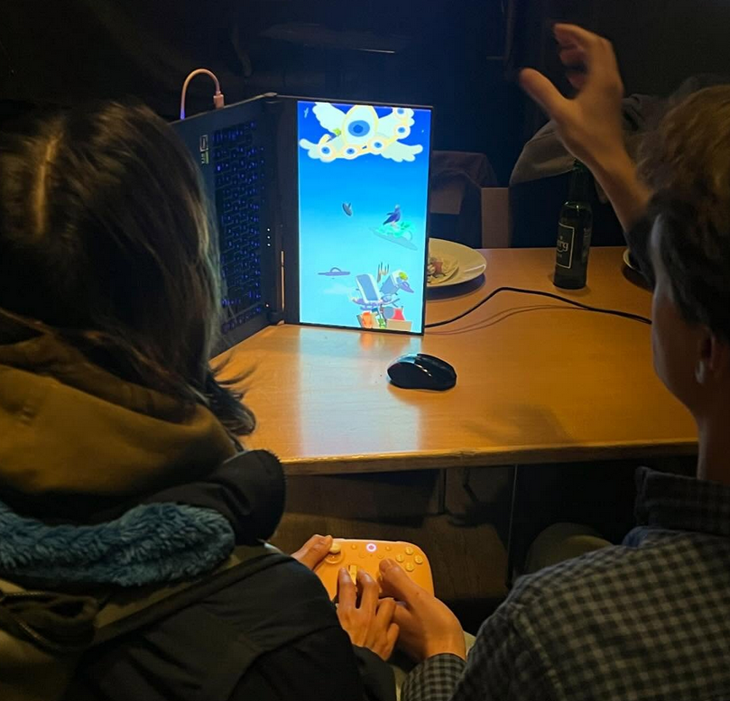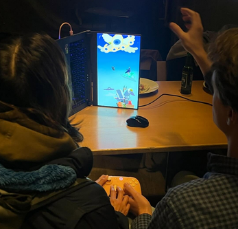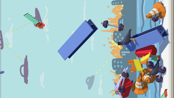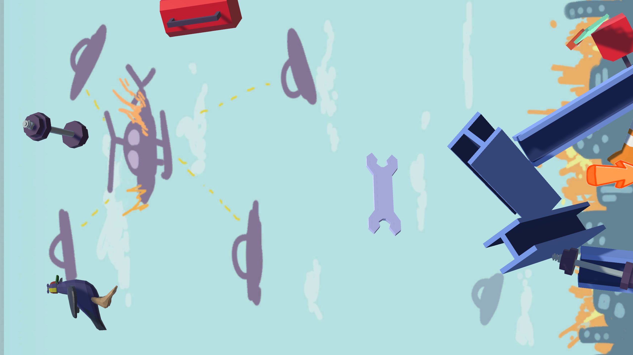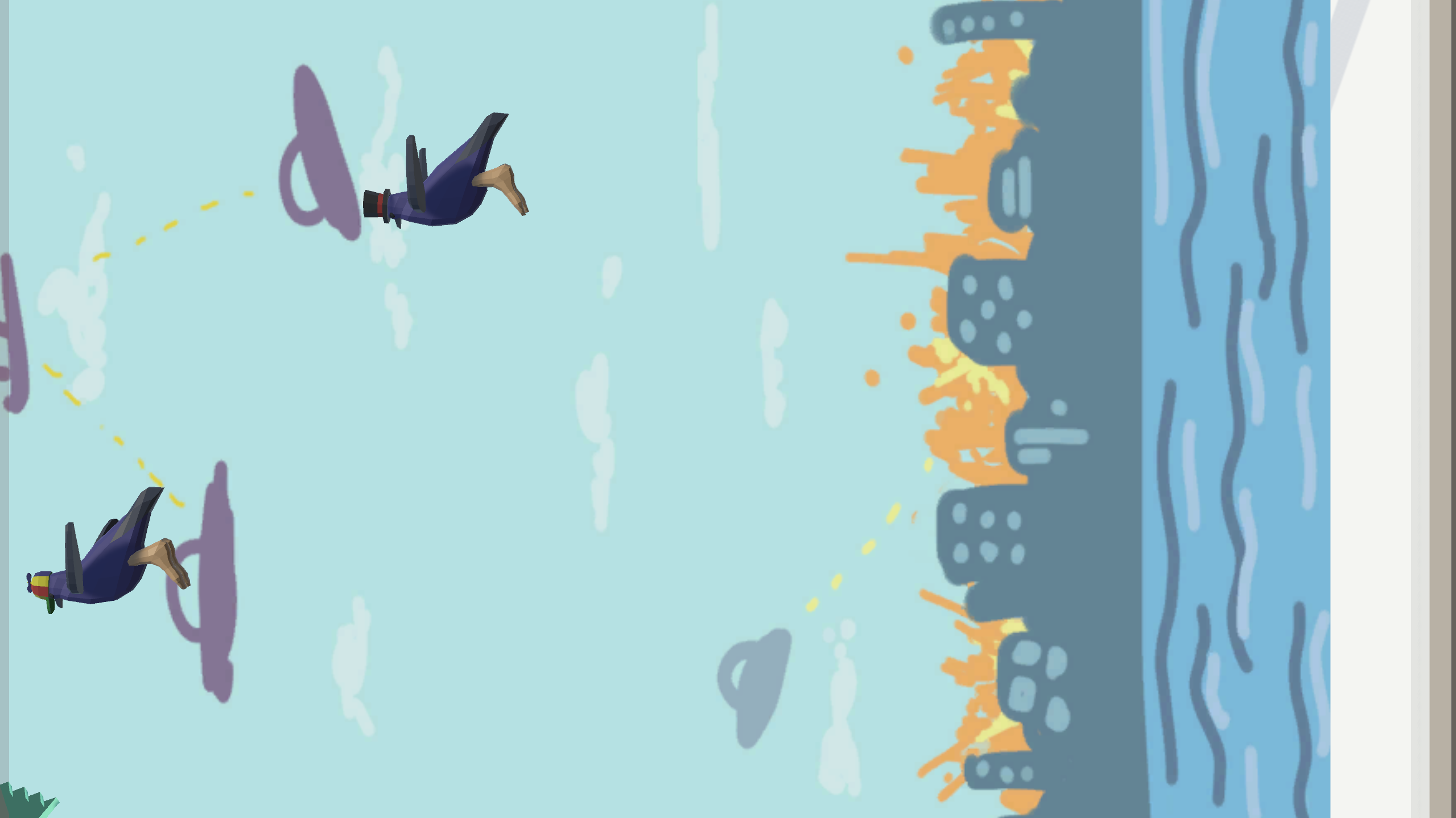 Try not to get captured by the falling obstacles while you try to hold your top-position. The input is simple: you just move and flap. But by keeping your height advantage you can also kick down your opponent!